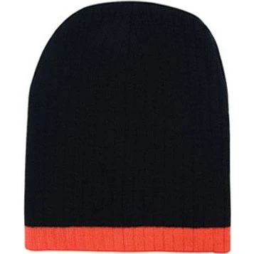 - Skull Beanie, 2.5cm Contrast Woven, Stripe to Bottom of Beanie, Cable Knit Weave, 22cm H x 20cm W